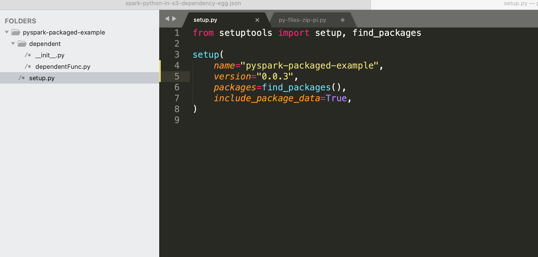 dependentFunc.py from earlier example has been bundled as pyspark-packaged-dependency-src.zip. Upload this file to a S3 location